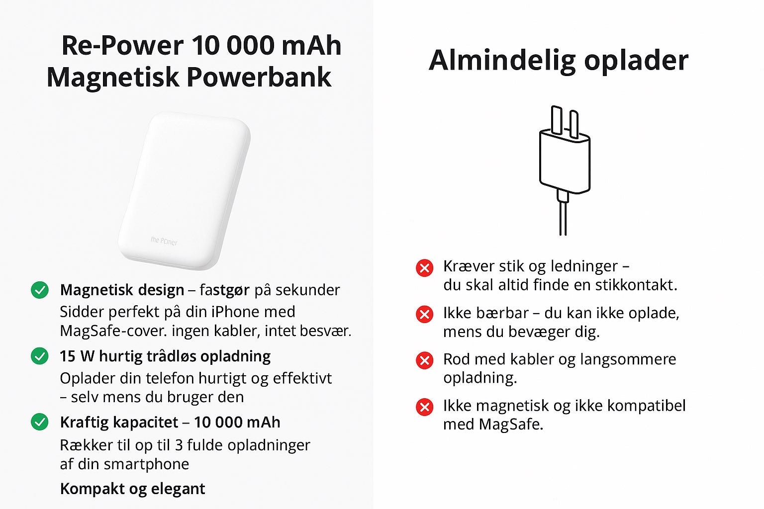 Mød den komplette opladningsløsning, der kombinerer kraft, design og bekvemmelighed. Vores Re-power sæt giver dig alt, hvad du behøver for at holde dine enheder kørende – uanset hvor dagen bringer dig hen. Sættet består af en kraftfuld magnetisk powerbank, et slidstærkt USB-C kabel og et elegant kanvas-etui.
